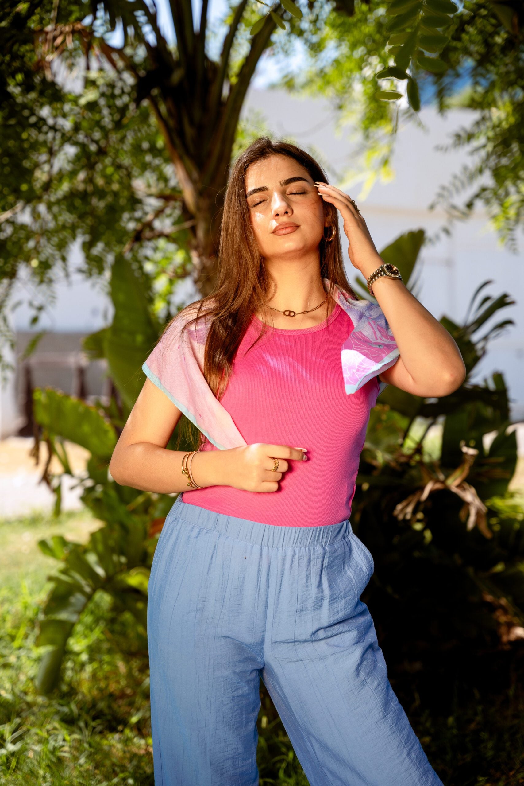 Ce débardeur en coton naturel est le basic à porter par excellence. C’est la pièce polyvalente qui illumine la journée et brille le soir.