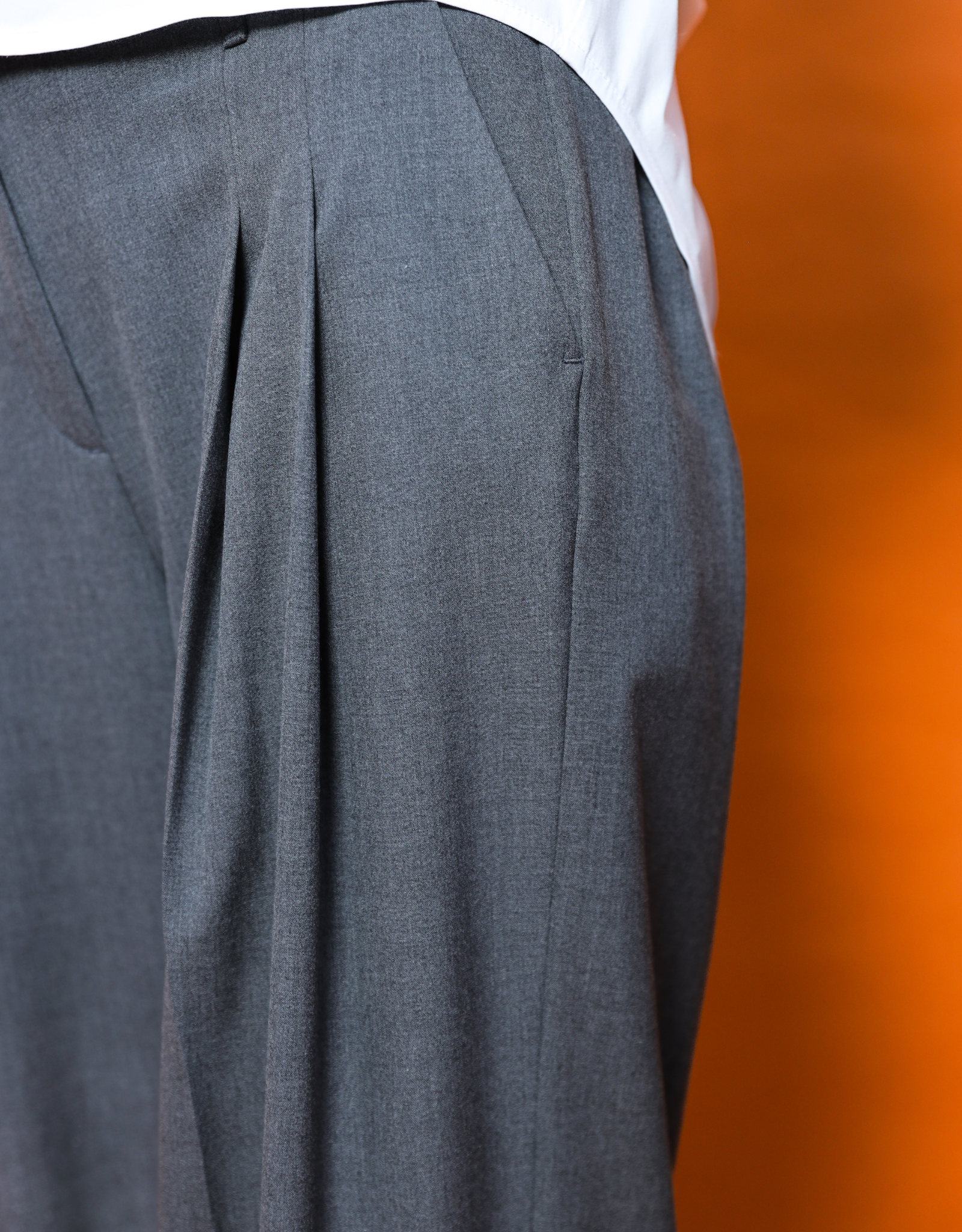 Pantalon évasé à jambes larges coloris gris foncé pour femme.