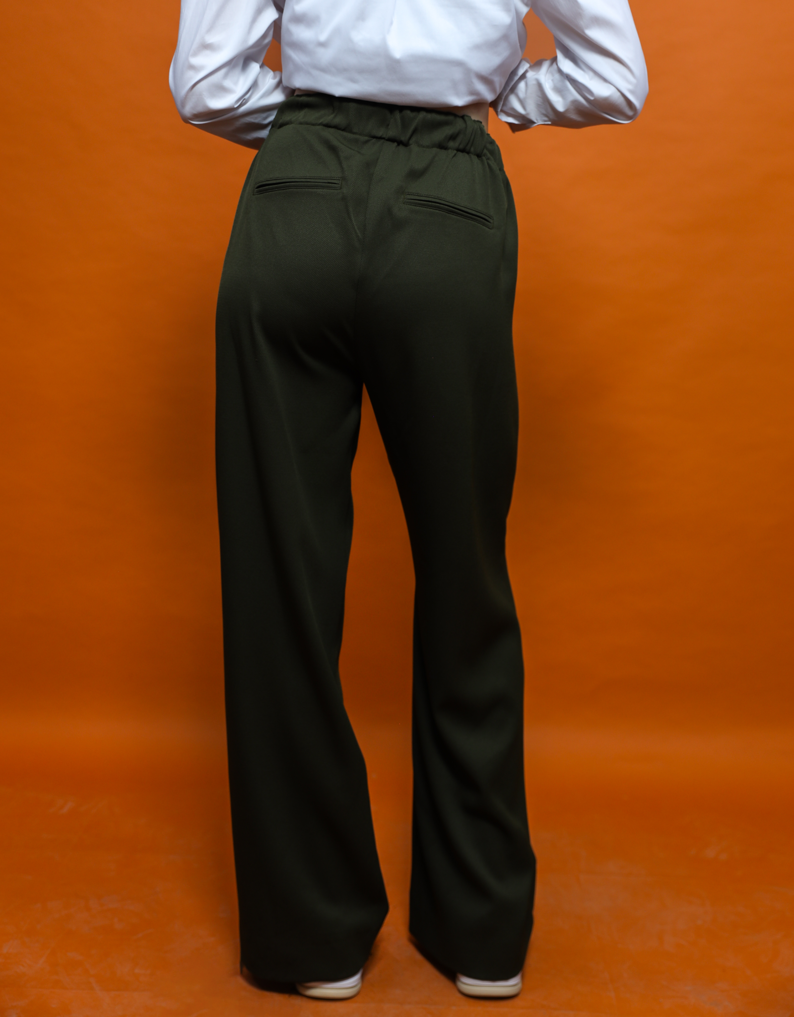 Célébrez le quotidien dans des pièces qui vous le rendent bien, en basket la journée, en talon la soirée ne faites pas l’impasse sur la veste coordonnée. Le pantalon KATTY excite en trois coloris ; noir, vert sapin et bronze pour femme.