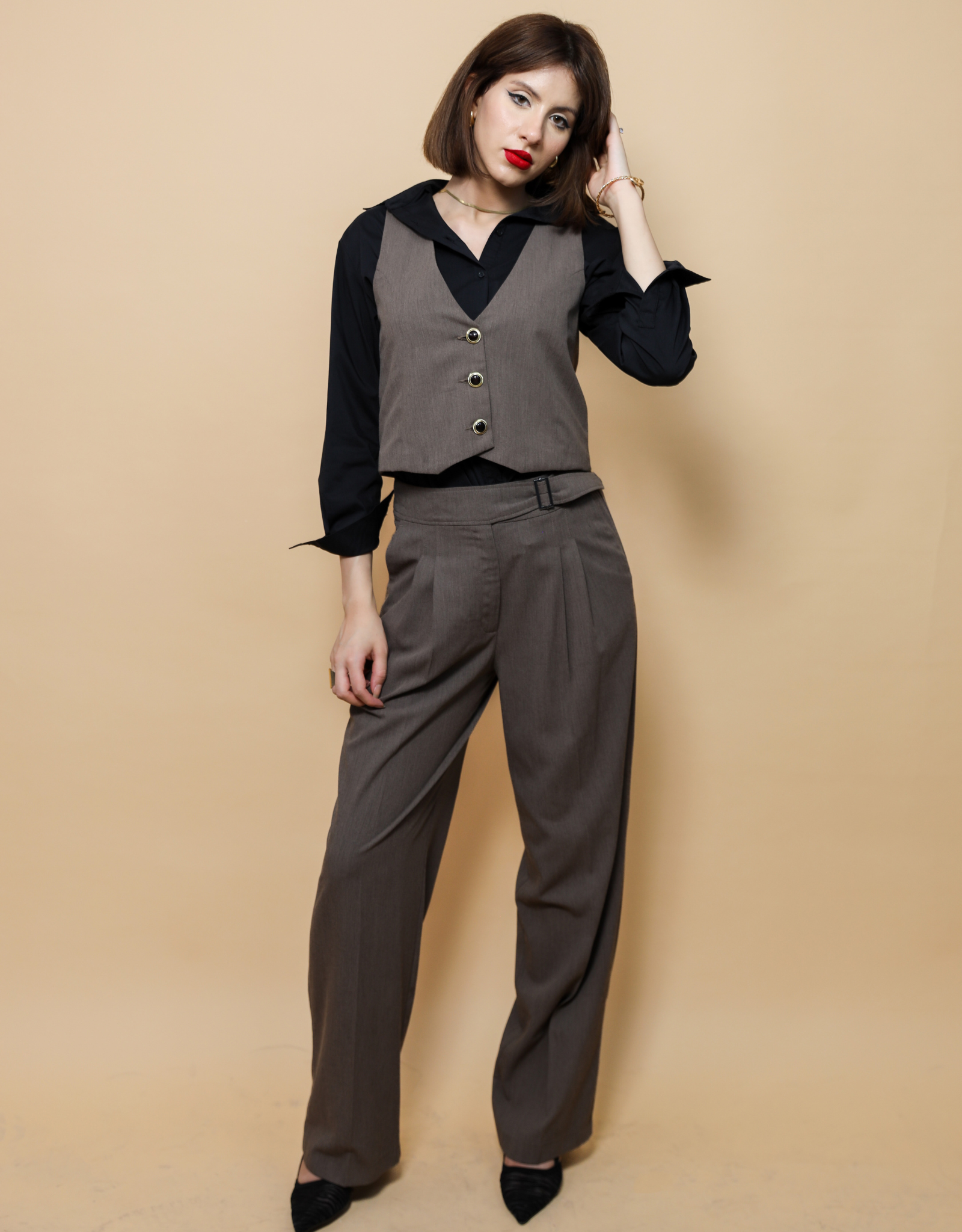 Pantalon de Tailleur existe en 3 coloris ; gris anthracite, gris ardoise, noisette.