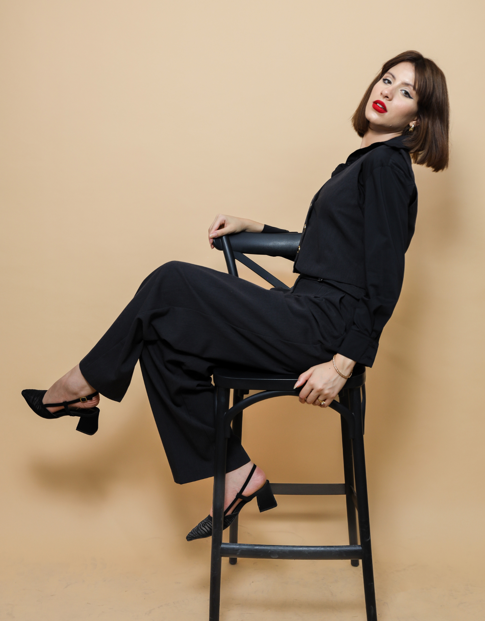 Une coupe flare et flatteuse. Le pantalon FATY est adapté à toutes les silhouettes, avec une boucle intégrée qui flatte la taille.