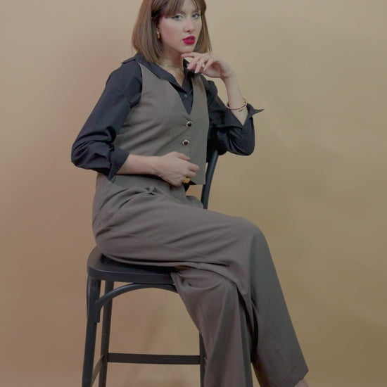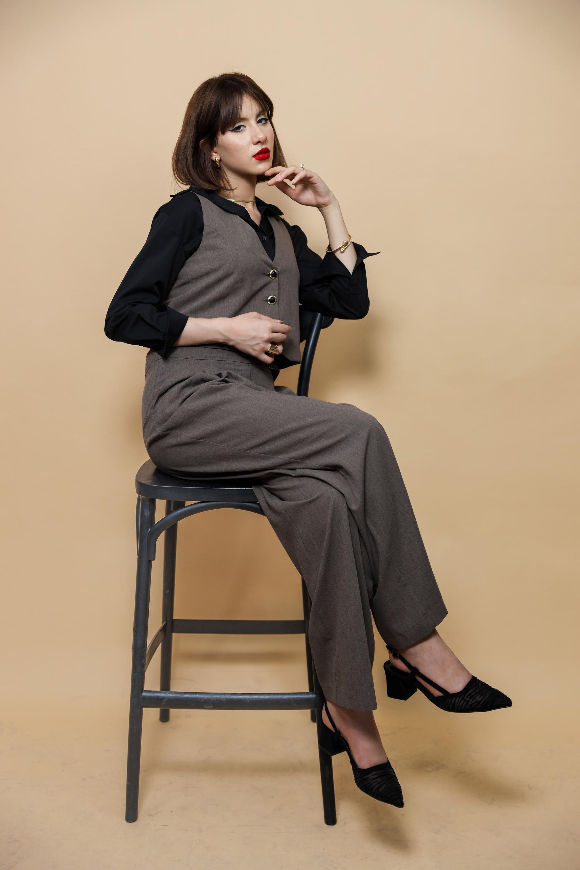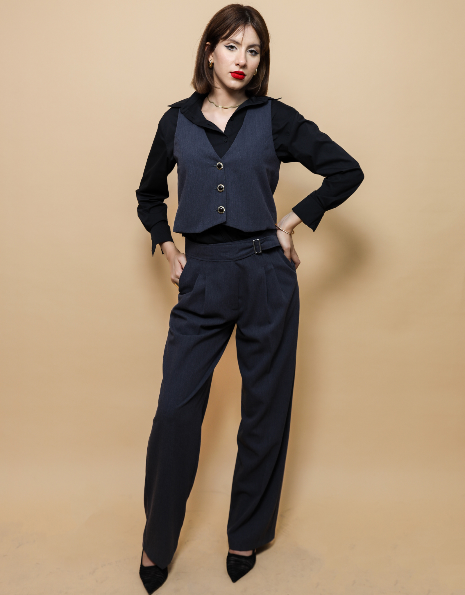 Pantalon de Tailleur existe en 3 coloris ; gris anthracite, gris ardoise, noisette.