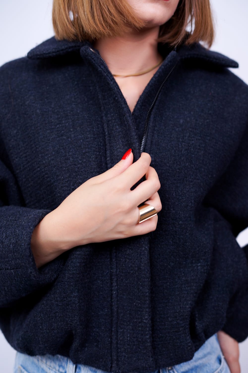Cette Veste courte bleu marine pour femme réchauffe chaque journée d’hiver. Sa coupe over size offre un style à la fois moderne et raffinée. Tandis que sa longueur cropped s’associe parfaitement à un jeans ou une robe.